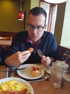 Mir läuft schon wieder das Wasser im Mund zusammen, wenn ich daran denke. Die Bedienung war überaus freudlich, wie wir es von den Amerikanern gewohnt sind. Wir haben eine Kinderportion und eine normale Portion genommen. Dazu hat sie uns noch die Quarkbällchen mit Zimt von der Weihnachtskarte (im Herbst) empfohlen. Die Empfehlung hat sich ausbezahlt… sie schmeckten wunderbar und mit der Menge hatte sie uns ausgezeichnet beraten. Alle waren satt und zufrieden und das ist die beste Voraussetzung für den Start in den Tag.