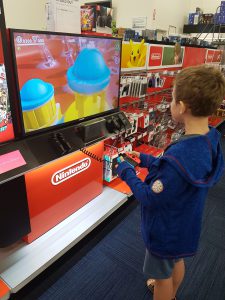 Danach schauten wir noch beim Best Buy vorbei. Endlich ein Laden für Nicolas (und Lucien). Dort gab es das neue Spiel von Nintendo zu testen, welches erst im Oktober auf den Markt kommt. Die Angestellten im Best Buy wollten das Spiel gerade testen, als sie Lucien’s sehnsüchtigen Blick sahen. Und auch hier, die Freundlichkeit der Amis ist toll, sofort hielt der Angestellte Lucien die Konsole hin und liess ihn spielen.