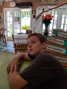 Für den heutigen Tag hatten wir eine lange Strecke zu fahren. Wir mussten mit knapp 4 Stunden rechnen. Am Morgen ging es frühzeitig los. Da wir unterwegs Picknicken wollten, hielten wir bei der Abfahrt noch kurz bei Walmart und kauften die benötigten Lebensmittel. Da Lucien schon lange auf der Suche nach den Stickbot Pets war und die bisherige Suche erfolglos verlaufen ist, haben wir kurz bei den Spielwaren vorbeigeschaut. Dort wurden wir tatsächlich fündig und konnten die lang ersehnten Stickbots kaufen. Bevor wir in den Walmart gingen, habe ich zu Lucien gesagt, er solle doch die Sonnenbrille im Auto lassen, sonst bleibt sie irgendwo liegen. Er wollte nicht…