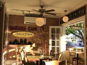 Wir schauten bei einiges Lokalen die Karte an und fanden schliesslich das wunderschöne Banana Café. Es war hübsch eingerichtet. Erschöpft liessen wir uns nieder und bestellten etwas zu trinken.