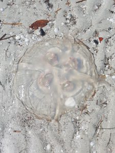 Nach dem Rast und dem ausgiebigem Fussbad fuhren wir weiter, um die Insel genauer zu besichtigen. Ganz vorne hatte es einen Leuchtturm und dorthin wollten wir. Es hatte jede Menge öffentliche Parkplätze. Wir parkierten das Auto und erkundeten die Gegend. Wir fanden Muscheln, sahen eine Qualle, lernten viel über Muscheln, sahen den Leuchtturm. Es war wunderschön, allerdings extrem heiss.