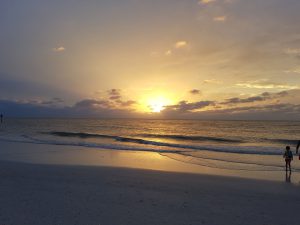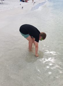 Der Regen hatte aufgehört, deshalb wollten wir unbedingt über die Strasse an den Strand und im Golf von Mexiko baden gehen. Es war herrlich. Das Wasser sehr warm und nicht so wellenreich wie in Miami. Wir wären am liebsten drin geblieben, doch langsam hatten wir alle Hunger. Nach dem Duschen und umziehen sind wir dem Strand entlang ins Zentrum von Clearwater gelaufen und haben dort ein geeignetes Restaurant gesucht. Es war nicht ganz einfach, da überall laute Musik gespielt wurde und Lucien das heute nicht mochte. Wir fanden dann schlussendlich ein gemütliches Strandbeizli wo wir draussen sitzen konnten und sehr gut gegessen haben.